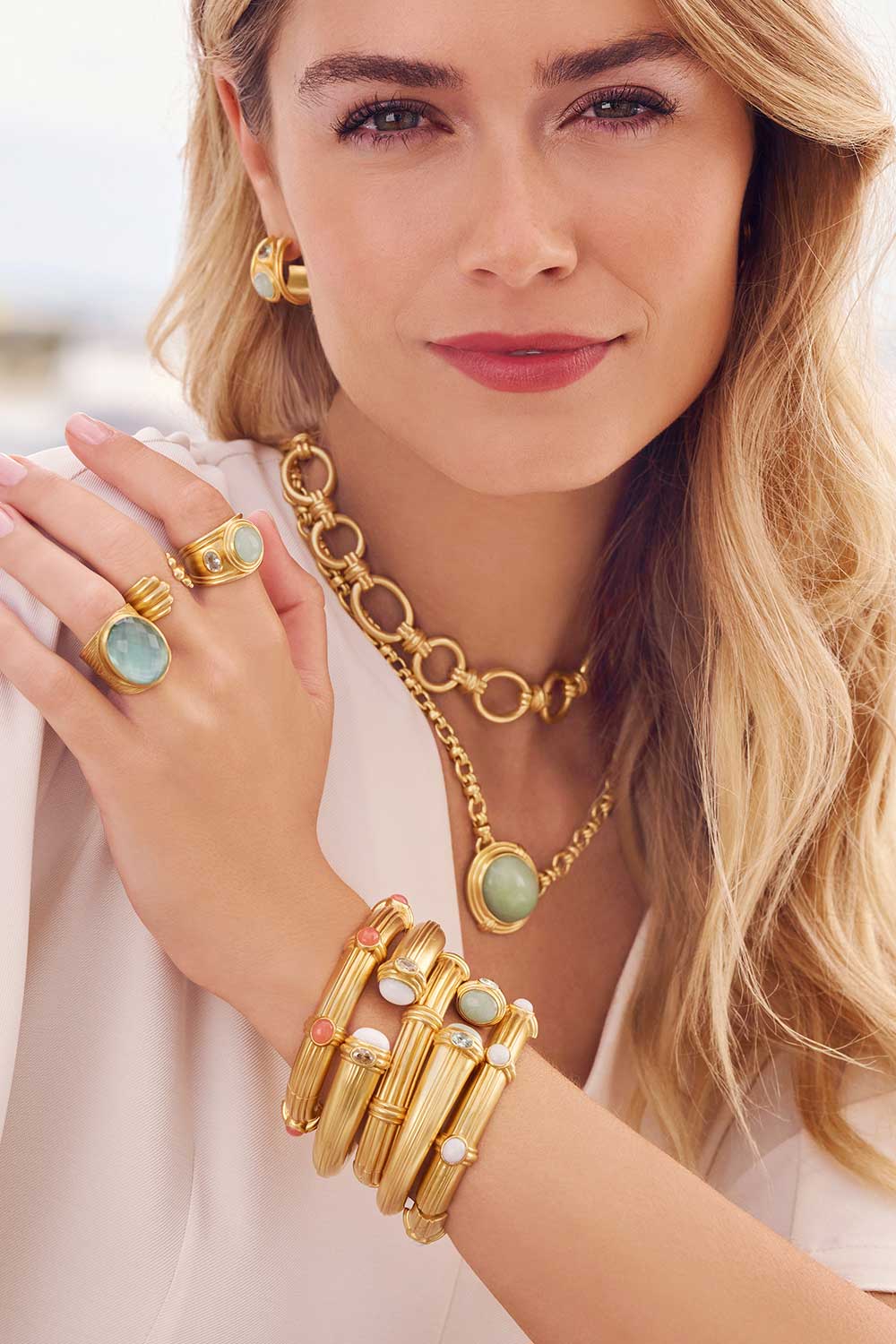 Julie Vos' Spring Jewelry collection for 2026 exudes the essence of the season, presenting a captivating array of springtime gold jewelry pieces that seamlessly blend luxury and style. This collection embraces the 2026 spring jewelry trends with a remarkable fusion of elegance and vibrancy. The fresh colors and delicate designs evoke the rejuvenating spirit of spring, making these accessories the perfect addition to your seasonal wardrobe. From spring stud earrings and seasonal bangle bracelets to statement necklaces adorned with radiant gemstones to dainty drop earrings that sparkle like spring blooms, each piece is a work of art crafted to complement your spring ensemble. Explore our highlighted Spring collections! Dive into sculpted oceanic jewels with pieces from the Wave Jewelry Collection, inspired by the allure of the sea. Explore fresh and luxurious styles inspired by classic Thoroughbred horse racing with the Saratoga Collection. Delight in elegant gems in a multitude of colors and cuts with treasures from the Kaleidoscope Jewelry Collection, capturing the pure beauty of gemstone jewelry. Discover these collections and more, each offering a unique blend of luxury and beauty to elevate your spring style. Julie Vos' gold Spring Jewelry collection reflects the brand's dedication to quality and sophistication. Whether you're aiming to make a bold fashion statement or add a touch of grace to your everyday look, elevate your spring wardrobe with this collection, tailored to suit every style and preference.